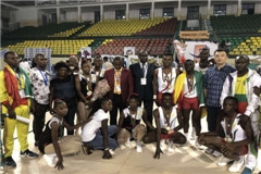 公派教师杨鹏的带领下,狂揽4枚金牌、2枚银牌和一枚铜牌7块奖牌(年龄二组团体金牌,男子单人操金牌、男子三人操金牌,成人组团体银牌,混合双人操金牌,三人操银牌,男子单人操铜牌)。对此,刚果(布)体操协会主席巴卡纳表示高度赞赏。