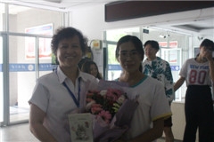 2018届全体女生却集体带着鲜花和贺卡感谢了一位“特别的家人”—中心校区10号公寓楼宿管阿姨曹公清。