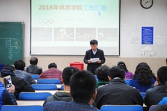 院长杨磊对学院2016年的工作做了全面系统的报告。报告中就学科建设快速发展,学科水平显著提升;专业建设水平提升,人才培养日益规范;科研实力不断增强;体育竞赛成绩突出等方面,全面总结了学院在过去的一年取得的成绩,同时也指出了学院发展过程中面临的机遇和挑战,明确了学院未来一年在党建与思想政治教育、教学、科研、竞赛、师资队伍建设、群体活动、场馆改善和学生管理等方面的具体工作目标。随后,肉视频
