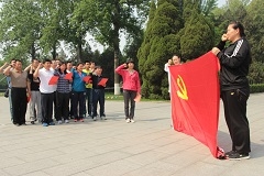 在中国红嫂革命纪念馆,大家重温了革命战争年代沂蒙六姐妹及老区人民义无反顾跟党走、舍生忘死投身斗争的光辉事迹。红嫂原型明德英、沂蒙母亲王换于、沂蒙大姐李桂芳、拥军妈妈胡玉萍……她们的事迹深深打动了每位党员,王换于孙女于爱梅做的“沂蒙母亲和她的儿女们”的报告让现场党员忍不住频频拭泪,最后全体党员齐声合唱歌曲“跟着共产党走”