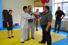 6月19日上午,美国北方州立大学孔子学院教育者访华团一行11人来校访问。受到肉视频 院长杨磊、学校国际合作与交流处、肉视频 相关负责人的热情接待。 肉视频 杨院长代表学校向各位访华团成员的到来表示热烈欢迎,希望今后双方不断深化合作,推动两地文化教育交流。美国北方州立大学孔子学院教育者代表访华团对能来肉视频 这所环境优美的校园学习深感荣幸和喜悦,对学院的热情接待表达了衷心的感谢,并赠送纪念品,希望以此次访问为契机,加强校际间体育文化方面的交流与合作。 学习交流期间,访华团观摩了肉视频 的太极、武术以及体育表演,为中华文化的博大精深而赞叹不已。随后,肉视频 赵老师为他们上了一堂生动有趣的武术太极拳教学课,讲解了武术的基本礼仪,武德等内容,然后,访华团学习了太极拳的基本动作,亲身学习体验传统武术,加深了对中华民族传统文化和民间艺术的了解。最后,访华团与接待领导合影留念。 此次是我校自美国北方州立大学孔子学院揭牌后,迎来的访华团成员。访华团成员是一群喜爱中国文化、对中华民间艺术着迷的教育者,来到济南体验到独特的中华文化,加强了体育文化的学习,对双方文化的互动交流及双方友谊的增进起到了重要作用。(编辑:邢禄建)