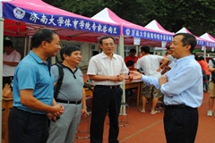 校领导亲临欢腾的迎新现场视察迎新工作,首先学院党委向校领导汇报了迎新工作的一些具体事宜,迎新展板的寓意,“火炬指纹”、“未来之星”创意等。视察中,程校长首先强调了迎新工作的重要性,学院必须落实好各项迎新工作。其次,他对现场的迎新师生甘于放弃休息时间,坚守工作岗位表示感谢和慰问,对所有迎新工作人员的周到服务和耐心解答表示赞赏,并鼓励他们牢记职责、准时到位、挂牌上岗,以更加认真细致的态度、更加昂扬向上的精神状态接待新生及其家长,展显师院优美的育人环境和师生良好的精神风貌。