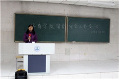 会议伊始,李涛老师对每周二例行的检查进行总结,分析了卫生与安全的问题,批评了卫生不达标的宿舍,同时指出了床帘、电源、电瓶车电池充电、吸烟等影响个人安全的现象,要求宿舍安全员要负起责任并排查安全隐患,若有安全隐患需及时反馈。为接下来的宿舍文明月活动做准备。接着,李谦老师提出五个意识:规则意识、责任意识、主人翁意识、团队意识,以此规范学生的行为。学院党委副书记、副院长卢琦,指出学校和学院对宿舍安全重视性极高,宿舍是窗口,通过窗口可以加深其他人对我院印象,并宣传肉视频