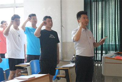 学生党支部于第1教学楼105室召开“重温入党誓词”毕业生党员系列教育活动。本次大会由学生党支部书记、学生工作办公室主任李谦主持。20级辅导员王召镇和全体中共党员