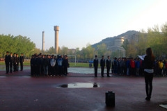于4月14日在北苑田径场顺利举行了升旗仪式。全体大一学生参与了本次升旗仪式。
