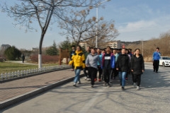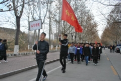 学生准时在操场上集合站队之后,英姿飒爽的国旗护卫队队员们护送鲜艳的五星红旗进场,行礼完毕,伴随着庄严的《中华人民共和国国歌》,五星红旗冉冉升起,迎风飘扬。在场的每一人向国旗行注目礼,身怀对祖国无限的热爱和崇高的敬意,营造了爱国爱校的良好氛围。最后,中午十二点十五分,十九个学院各派出的50人方队在图书馆面前积极集合完毕之后,由各个领队人员带领着开始追寻着先辈的足迹。环校过程中,队伍的排列形式、整齐的步伐、响亮的口号响彻整个校园,体现出了宏伟的气势。